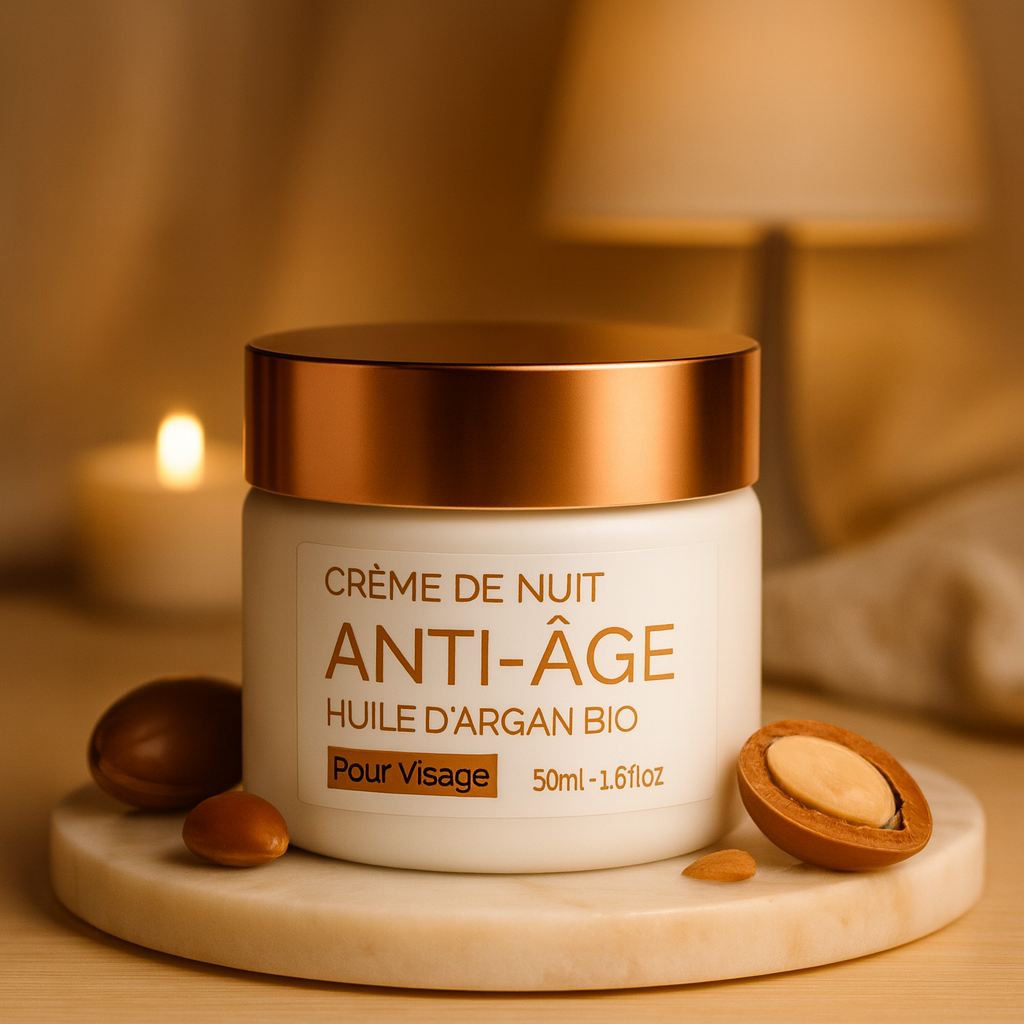 La Crème de Nuit Argan Bio est un soin intensif conçu pour régénérer la peau pendant le sommeil, moment où elle se renouvelle naturellement.
